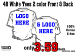 Big Savings 48 White Tees 2 color Front and Back Print starting @ $3.59 (additional imprint colors are extra) restrictions apply